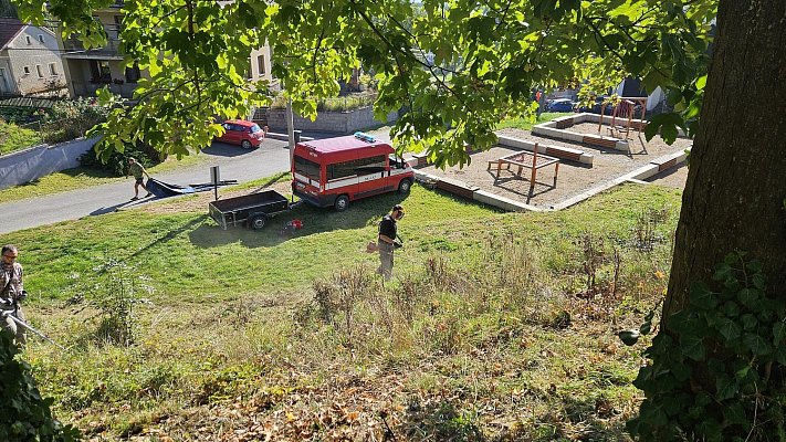 Žádáme o pomoc s roztažením tkaniny a výsadbou půdopokryvných rostlin nad bývalou školou.