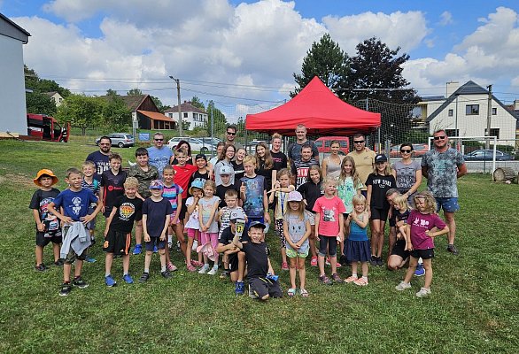 Druhý srpnový víkend patřil dětem. Uspořádali jsme pro ně stanování na hřišti. V sobotu nám plány trošku pokazilo počasí a začali jsme o trošku později, ale ani zamračená obloha nezabránila postavením stanů. Holky připravily pro děti palačinky a zahráli jsme si nějaké hry na hřišti. Všem se líbila hra na psí boudičky :-) Navečer jsme si opekli buřty a potom následoval bobřík odvahy. Ráno jsme si dali snídani a v půl desáté přišla na řadu ukázka Městské policie Klatovy. Ochotní strážníci ukázali dětem vybavení auta, vesty, obušky i želízka. Všem se ukázka moc líbila. A to už se všichni těšili na oběd. Tradiční kuře na paprice od Jardy chutnalo jako vždy úplně všem. Odpoledne jsme vyrazili na dlouho slibovanou LaserGame do Točníka. A to bylo něco. Všem dětem i dospělým se hra líbila a kdybychom neměli další plány, tak bychom tam byli doteď. Než jsme se vydali na cestu s úkoly lesem zpět, dali si děti svačinku v podobě toastů. V lese na děti čekal po vyluštění hádanek poklad. Poté jsme se již vydali k hasičárně uklízet. S úklidem nám pomohli i některé děti. Akce se moc povedla a děkuji všem organizátorům, pomocníkům i rodičům za účast.