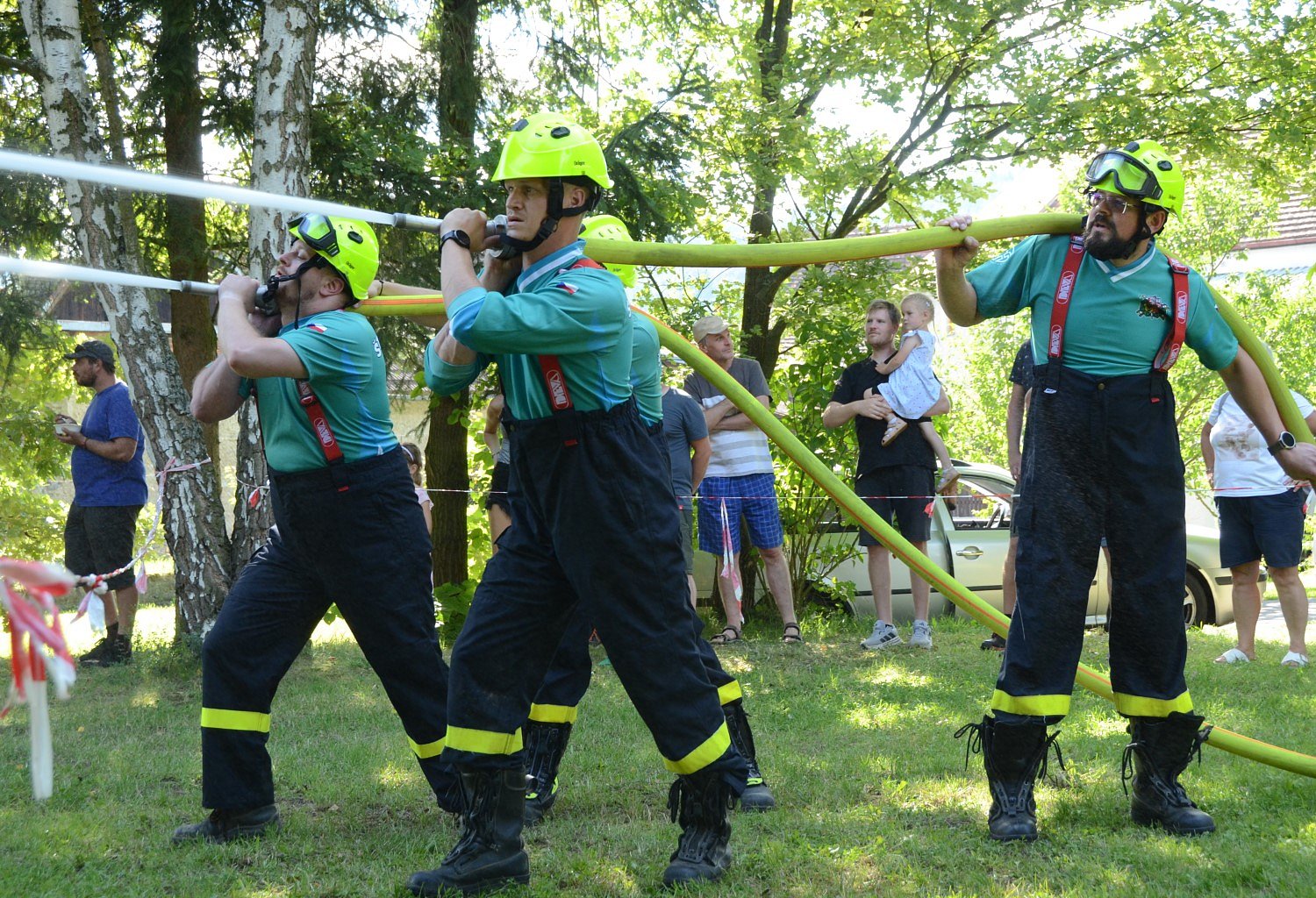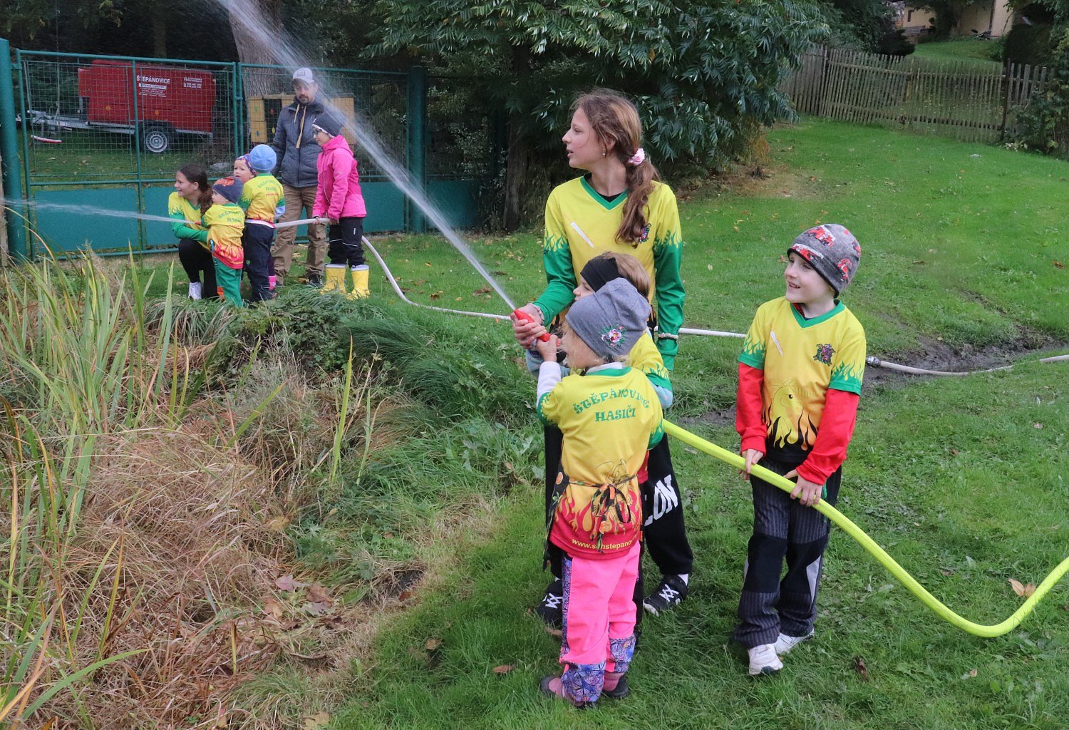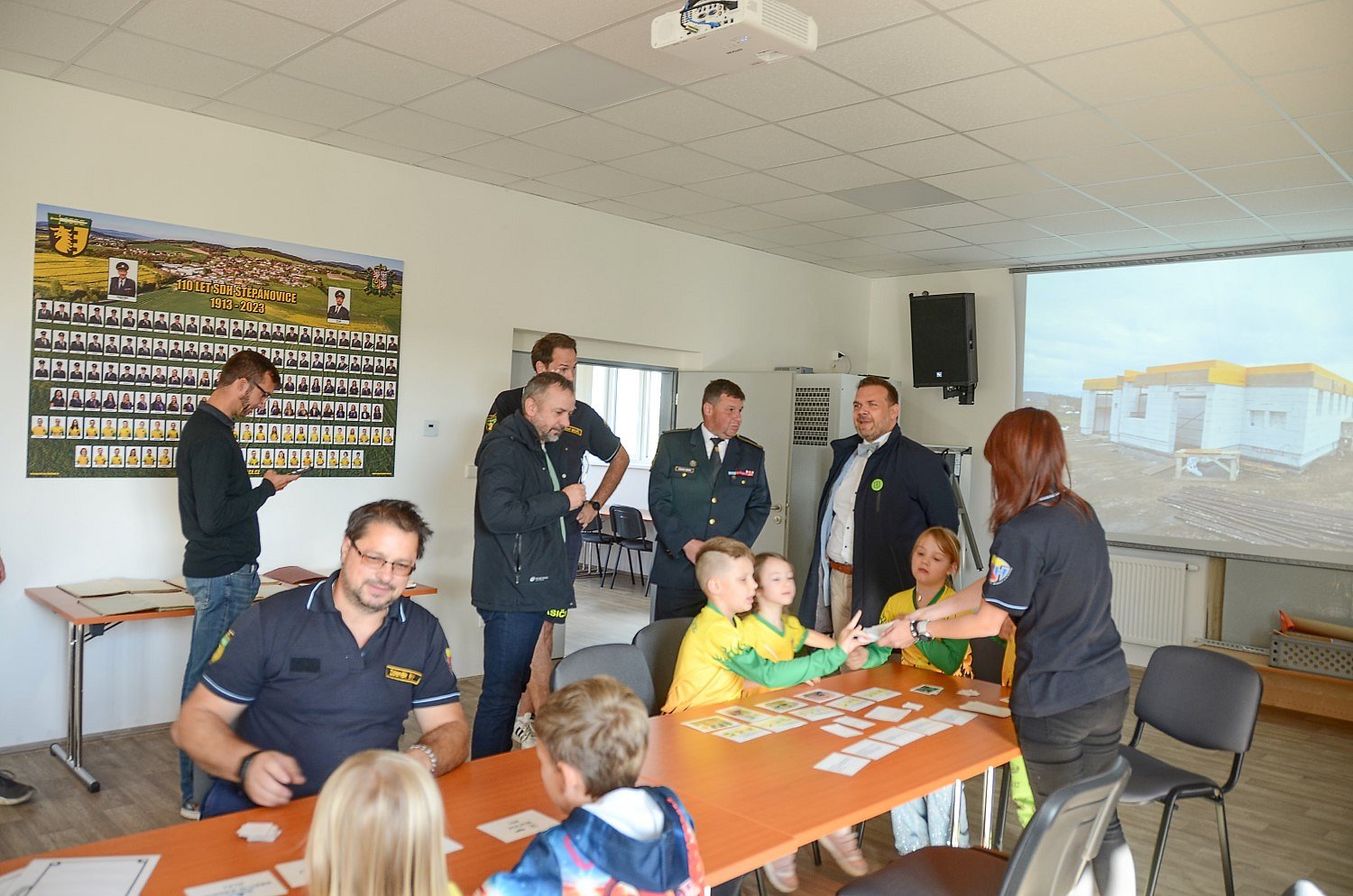 členové SDH v uniformách a děti