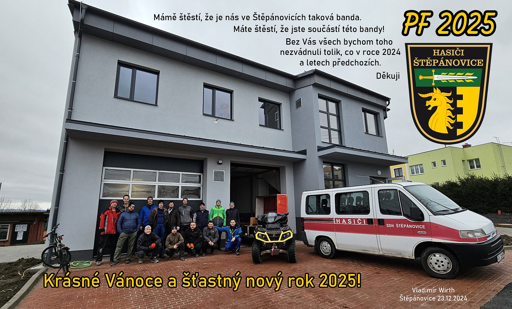 Krásné Vánoce a šťastný nový rok! Děkuji všem aktivním členům za bezpočet hodin věnovaných našemu sboru a koníčku hasičině. Vladimír Wirth, starosta SDH Štěpánovice